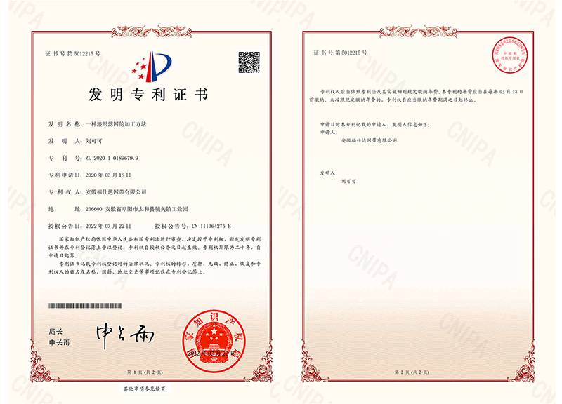 波浪型濾網(wǎng)發(fā)明專利