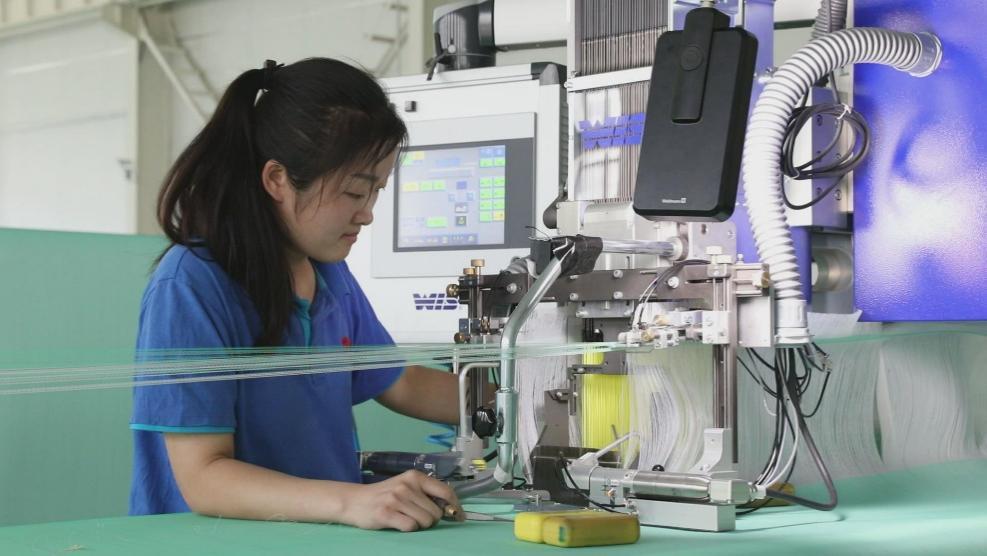 在福仕達(dá)的智能化生產(chǎn)車間,裝備有國(guó)際先進(jìn)水平的整經(jīng)機(jī)、寬幅劍桿織機(jī)、定型機(jī)和全自動(dòng)插接機(jī)等高端設(shè)備高效運(yùn)轉(zhuǎn),數(shù)字化大屏實(shí)時(shí)監(jiān)控產(chǎn)品良率與能耗數(shù)據(jù),福仕達(dá)將智能化改造視為新質(zhì)生產(chǎn)力的核心引擎。